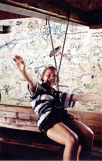 Teraz opowiem o Tofanach. Sa trzy: di Mezzo, di Dentro i di Roses. Środkowa, zadnia i różowa, jeśli mnie pamięć nie myli. Tu widać pierwsze dwie (14) z wyżej wymienionych. Di Mezzo po prawej a di Dentro po lewej. Tofany to fajny temat na wycieczkę dwudniową z noclegiem w górach w tzw. bivacco. Są to przymocowane do skały (co by ich nie zwiało) najczęściej metalowe (acz niekoniecznie) „puszki” (schrony) mogące zapewnić kilku osobom w miarę wygodny i ciepły nocleg. Standardowo są wyposażone w prycze + koce oraz stół + coś pod zadek. Czasem zdarza się nawet prowiant od poprzednich turystów. Oto (32) zdjęcie nietypowego bivacco, ponieważ zdjęciem typowego nie dysponuje. Jest to przerobiony na bivacco domek używany przez żołnierzy, podczas walk, które w tych górach miały miejsce podczas I Wojny Światowej. Wracając do tematu Tofany to mieliśmy zaplanowany nocleg w bivacco miedzy Tofaną di Mezzo a di Dentro, ... ale nam nie wyszlo. Gdy dotarliśmy na szczyt, widoczność była mniej więcej taka (4) a śniegu było po kolana. Po godzinie bezskutecznego szukania szlaku zrobiło sie ciemno. Wracać było nie można, bo ferrata w dół należała do tych bardziej pikantnych a my do tych bardziej zmęczonych, a przez to nieuważnych. Dowód fotograficzny: 11 19. To samo miejsce z dwóch ujęć. Zarówno pod Agnieszką, jak i pod Tomkiem jest „żądna krwi otchłań” o szacunkowej wysokości ok. 200 m. Na Tofanie di Mezzo jest górna stacja kolejki, która dała nam schronienie. Było fajnie. Temperatura w tej górskiej szklarni wynosiła ok 0 stopni. Tomek został trochę bez zapasów (bo szedłwszy trudniejsza trasą zostawił je idącym łatwiejszą trasą, którzy to na skutek sił wyższych nie dotarli). Kulminacją programu był posiłek: zupka chińska jedzona wieczkiem od puszki po paprykarzu (16) oraz kisiel i ciepła woda o posmaku kisielowym (sposób czyszczenia menażki), która rozpoczęliśmy kolejny dzień. Tu (17) jeszcze zdjęcie dowodowe - można się doczytać tablicy z nazwą i wysokością. Nie zawsze było rzecz jasna tak ekstremalnie. Czasem pogoda bywała lepsza np. 7 , bądź tu 10, czy tu 8.(Czy ktoś mi może przypomnieć, jak się ta góra nazywała...?) Super też udała mi się wycieczka na Tofane di Roses. W porę zdałem sobie sprawę ze potrzebna jest mi latarka, której nie ma. Spędziłem więc udany dzień jedząc czekoladę i namiętnie fotografując (2, 3).