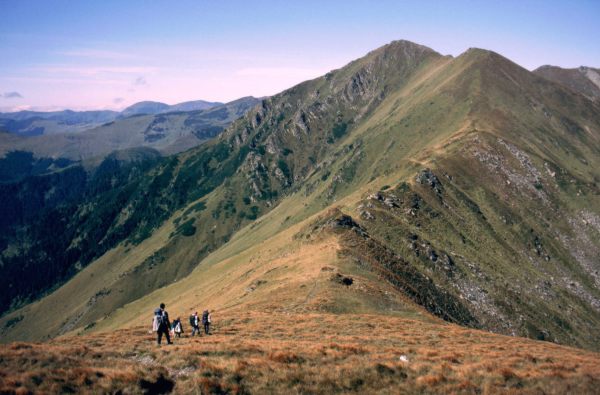 Rano obudziły mnie głosy Warszawiaków, którzy robili dużo hałasu zagrzewając się wzajemnie do wstania. A wstać faktycznie warto było wcześnie, bo po wyjściu z namiotu ujrzałem nad sobą czysty błękit nieba, zapowiadający trwałą zmianę pogody na kilka dni. Od razu przypomniały mi się wyże, które towarzyszyły mi w Rumunii rok i dwa lata temu i miałem nadzieję, że tym razem jest to również podobne zjawisko. Ranek był mroźny (w nocy temperatura spadła poniżej zera, o czym świadczyła zamarznięta w butelkach woda) i trochę czasu nam zajęło rozruszanie kości. Zagotowaliśmy na epigazie wodę na musli i zabraliśmy się za pakowanie. Na pożegnanie zrobiliśmy sobie jeszcze kilka grupowych fotek z Warszawiakami i ruszyliśmy w przeciwnych kierunkach. Po wejściu na przełęcz Gargalău naszym oczom ukazała się zachodnia część grani oraz szczyty leżące na południe od niej. Przy podejściu na Vf. Galaţului natknęliśmy się na pasterzy ze stadem owiec, a na szczycie spotkaliśmy dwóch Czechów. Oni też myśleli, że te odgłosy, które również dziś było słychać, to jakaś burza. Uświadomiliśmy im, że to nie burza tylko vojacy. Po zejściu z Vf. Galaţului strawersowaliśmy Laptele Mare i wyszliśmy na przełęcz Puzdrelor. Tam zostawiliśmy plecaki i na lekko skoczyliśmy na leżący w bok od szlaku szczyt Puzdrele (2189). Tam posiedzieliśmy sobie troszkę podziwiając widoki na pobliską grań Rodniańskich z najwyższym Vf. Pietrosu (2303) oraz przebytą przez nas trasę z wyrastającym na jej początku Ineu. Na jednym ze szczytów na północny zachód od Alp Rodniańskich wypatrzyliśmy cztery białe kopuły - najprawdopodobnie obserwatorium astronomiczne. Trudno nam było jednak stwierdzić - rumuńskie czy ukraińskie, gdyż było dość daleko, a nie wiedzieliśmy dokładnie gdzie przebiega granica. Po powrocie na przełęcz przeszliśmy kawałek granią aż znaleźliśmy nasłonecznione i osłonięte od wiatru miejsce, gdzie zrobiliśmy sobie obiad. Dalej nasza trasa wiodła trawersem szczytu Negoiasa Mare do przełęczy Tarniţa Negoieselor. Za przełęczą rozdzieliliśmy się i Agata poszła trawersem, a reszta ruszyła granią przez szczyty Repede (2074) i Cormaia (2033). W okolicy tego drugiego szczytu zauważyliśmy trzy rozbite namioty i była to najprawdopodobniej szóstka z Łodzi, z którymi też jechaliśmy w autobusie do Suczawy. Byli rozbici trochę poniżej grani. Rzuciliśmy „cześć” wyglądającej z namiotu dziewczynie i poszliśmy dalej na spotkanie z Agatą, która czekała już na nas na przełęczy Obirsia Rebri. Razem weszliśmy na szczyt o tej samej nazwie, z którego wypatrzyliśmy okolicę dogodną na nocleg w rejonie przełęczy Tarniţa La Cruce. Z przełęczy zobaczyliśmy górskie jeziorko, strumyk i płaską trawkę pod namioty. Sądząc po ilości śmieci (niestety!) miejsce to cieszyło się sporą popularnością. Ponieważ nie było w okolicy ani śladu drewna na ognisko kolację musieliśmy przygotować na epigazach. Ugotowaliśmy sobie zupkę jarzynową na suszonym warzywku i kostkach Knorra, którą zjedliśmy z resztkami chleba z pasztetem. Jeszcze zanim przystąpiliśmy do robienia kolacji zobaczyliśmy na przełęczy dwie postacie przypatrujące się nam i jakby wahające się, czy podejść. W końcu zeszli. Okazali się sympatyczną parką Niemców - studentów z Lipska (on geografia, ona biologia). Dobrze mówili po angielsku, więc porozmawialiśmy sobie trochę. Dowiedzieliśmy się od nich między innymi, że w Borşy można kupić mapę szlaków okolicy Borşa - Vişeu oraz że jechali kolejką wąskotorową w dolinie Vaseru. Mieliśmy to również w planach po przejściu Rodniańskich i dobrze było się upewnić, że kolejka ta funkcjonuje. Niestety nie potrafili powiedzieć dokładnie w jakich godzinach kursuje, bo to podobno zależy od okoliczności danego dnia. W każdym razie rano jedzie do góry i wraca po południu na dół z drewnem. Spróbujemy się na nią załapać. Wieczorem w namiocie czekała mnie miła niespodzianka. Moi współpodróżnicy pamiętali, że właśnie dzisiaj mam imieniny i odśpiewali mi sto lat, a Miron wręczył mi butelkę piwa - prezent tym cenniejszy, że niósł ją w plecaku aż od przełęczy Rotunda. Naprawdę doceniłem to poświęcenie, bo gdyby ta butelka była w moim plecaku już pewnie dawno bym ją wypił. Smakowało wyśmienicie. Drugim prezentem, który mnie bardzo uradował, był prezent od natury - wyglądało na to, że dobra pogoda, którą mamy od rana, ma zamiar zostać z nami na dłużej. Noc nadchodziła mroźna i gwieździsta.