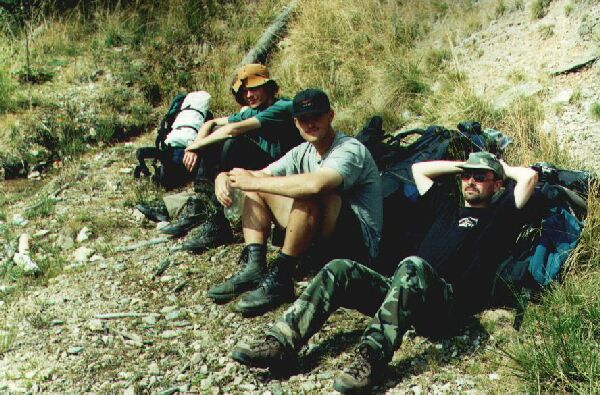 Chcieliśmy w Borşy zjeść jakiś obiad w knajpie, ale wszystkie lokale jakie widzieliśmy, to były typowe mordownie-kufloloty, gdzie serwowano tylko piwo. Dopiero Miron z Jarkiem znaleźli jakąś knajpę obok bazaru na przeciw poczty. Każdy zamówilił tam sobie coś do jedzenia, ale generalnie byliśmy bardzo zawiedzeni tym, co dostaliśmy i poziomem knajpy. Po jej opuszczeniu nabyliśmy na rynku pomidory, paprykę i arbuzy. W sklepie dokupiliśmy jeszcze chleb, czekoladę, ciastka i wino i przysiedliśmy na chwilkę w celu konsumpcji arbuzów. Na tym zakończyliśmy naszą wizytę w mieście i stanęliśmy na przystanku autobusowym w kierunku Băile Borşa. Poczekaliśmy tam chwilkę i wsiedliśmy do busika, który za 5000 lei od łebka zawiózł nas na sam koniec Băile Borşa. Okazała się ona typową robotniczą osadą z górniczymi familokami. Ruszyliśmy w górę drogą w stronę kopalni rud cynku i ołowiu, którą było widać z daleka w masywie Trojagi. Po niecałym kilometrze odbiliśmy od niej w lewo w dolinkę potoku wypływającego spod szczytu Stina lui Virtic. Postanowiliśmy znaleźć gdzieś tu nocleg, ale dość kiepsko było z miejscem na namioty. W końcu zdecydowaliśmy się na jedno, ale było kamieniste i dość pochyłe. Niestety wyglądało na to, że lepszego nie znajdziemy. Mieliśmy za to dużo suchego drewna pod ręką i rozpalenie dużego ogniska trwało dosłownie sekund pięć. Ugotowaliśmy sobie ryż z sosikiem i obaliliśmy zakupione w Borşy winko. Wieczór był bardzo ciepły. Dość szybko poszliśmy spać, bo rano czekała nas wczesna pobudka.